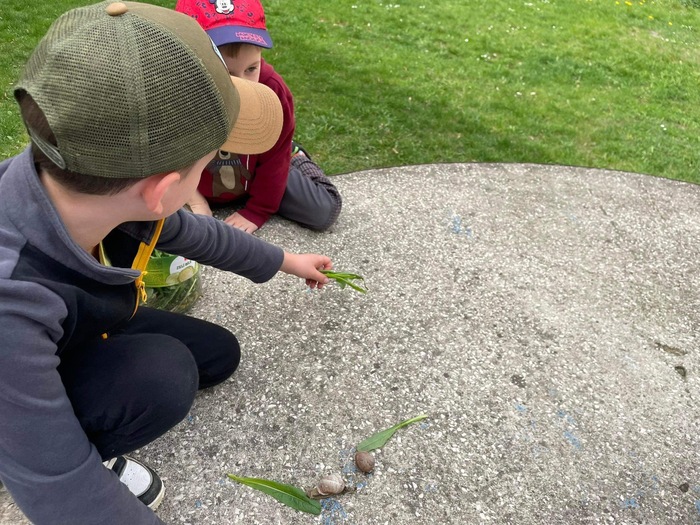 Na dnešní procházce jsme našli a adoptovali si šneky. Aby se u nás nenudili, uspořádali jsme jim spoustu zábavy, vyrobili domeček a odpočinkovou zónu, nakrmili je a odpoledne zorganizovali šnečí závody. Doufáme, že se jim u nás bude líbit a že nám svým tempem přes noc neutečou.